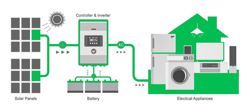 - An off-grid system requires batteries to store and provide power.